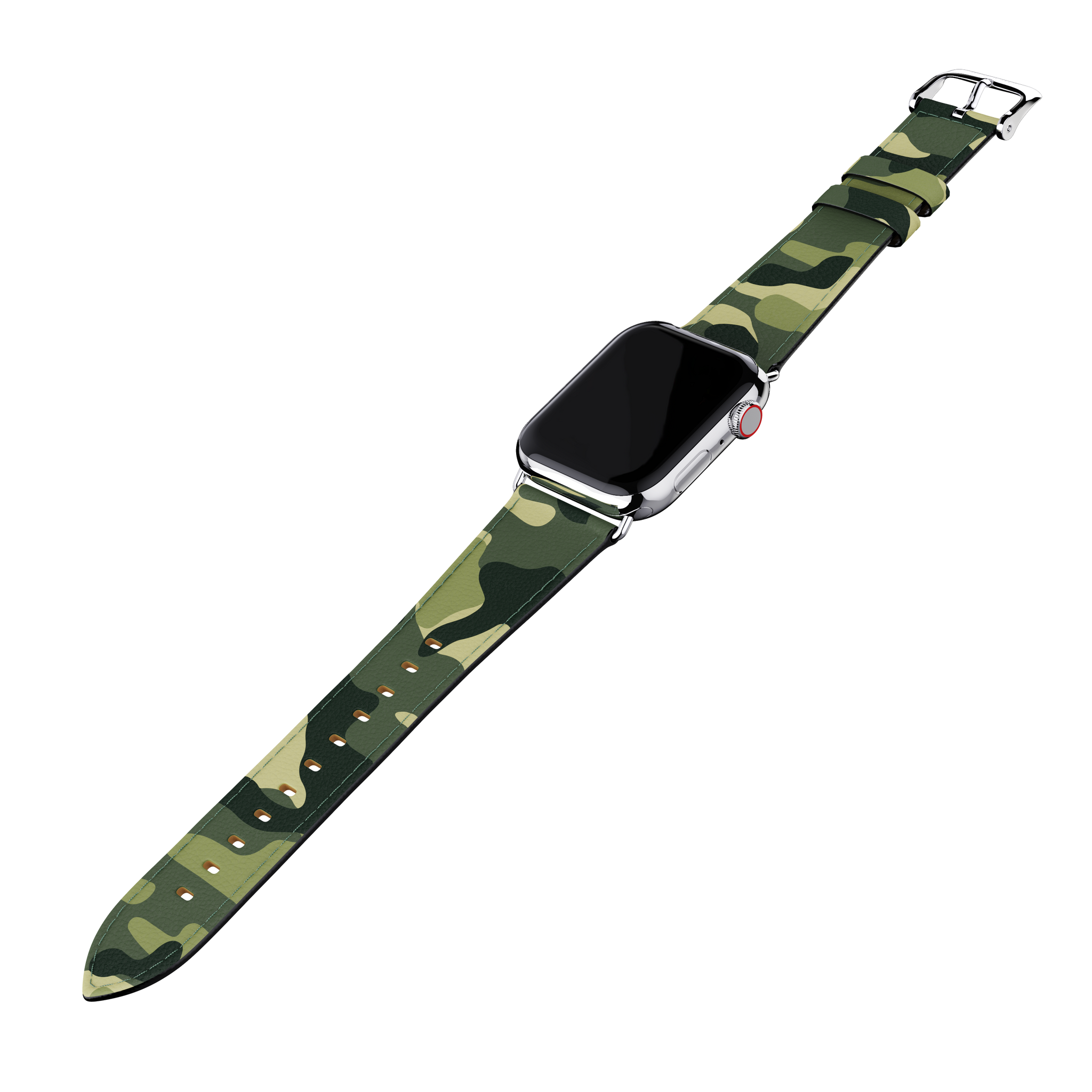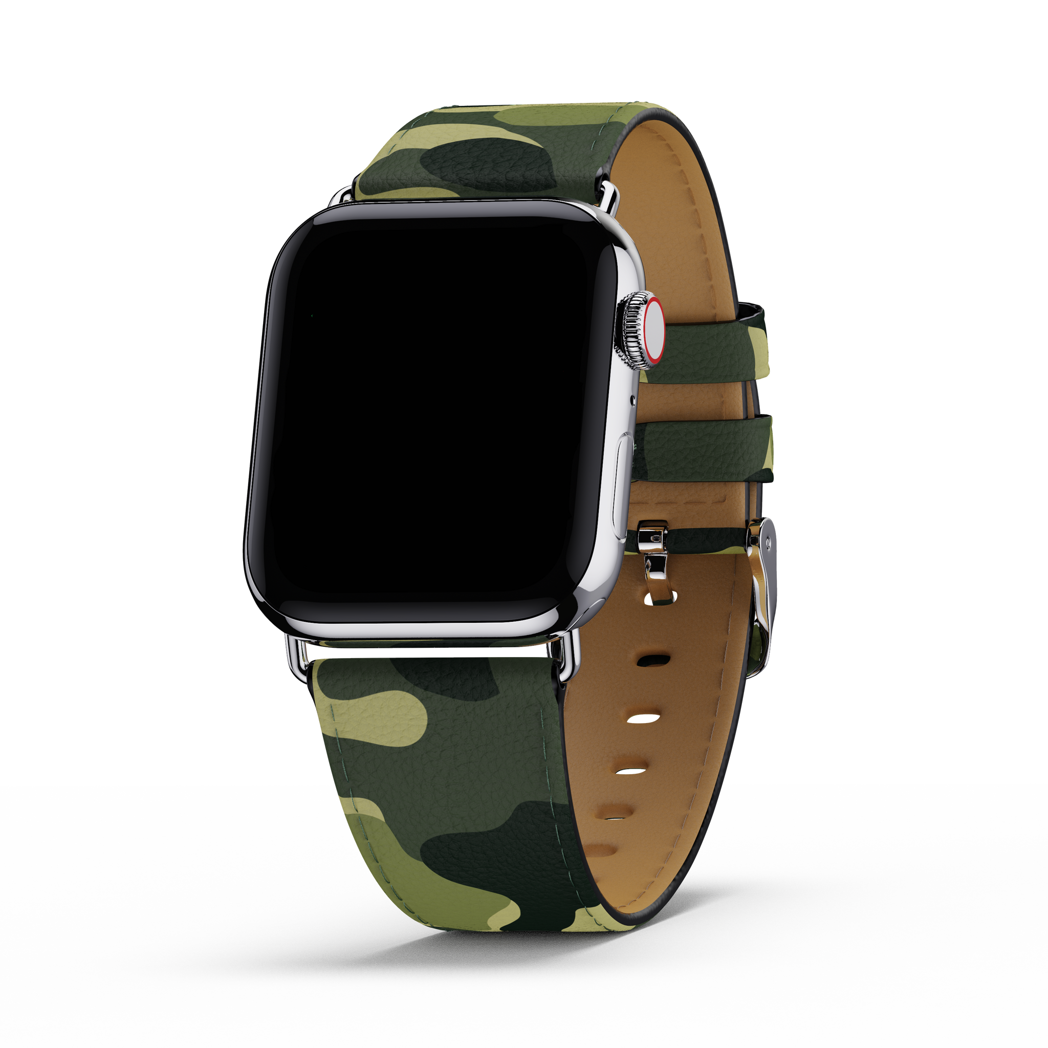 Add cool girl style to your Apple watch with the new Green Camo band. Made with durable vegan leather on the outside and soft genuine leather on the inside, our bands are enduring in both strength and style. Each band comes with a silver “Wildflower” embossed clasp. They are available in two sizes and are compatible with Apple Watch Series 3, 4, and 5.