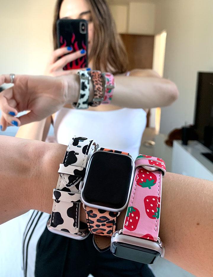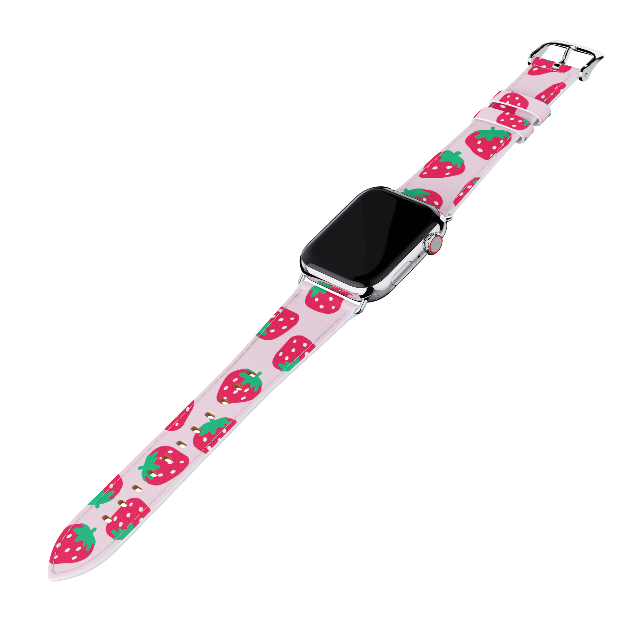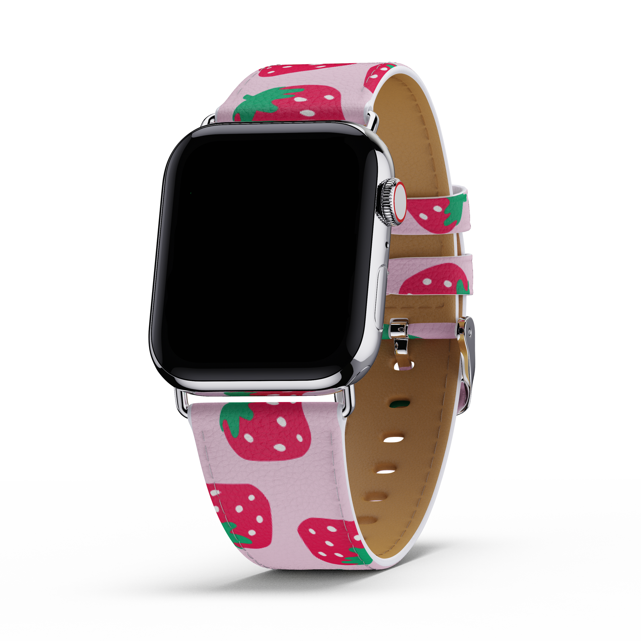 How cute is the Strawberries Apple watch band? Our bands are made with durable vegan leather on the outside and soft genuine leather on the inside, making it strong enough for everyday use. Each band comes with a silver “Wildflower” embossed clasp and are available in two sizes. Wildflower bands are compatible with Apple Watch Series 3, 4, and 5.
